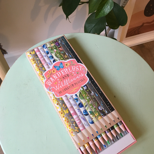Capture the beauty of the world around you in vibrant hues with this set of ten coloured pencils. Each pencil features an original design by artist Katie Daisy.